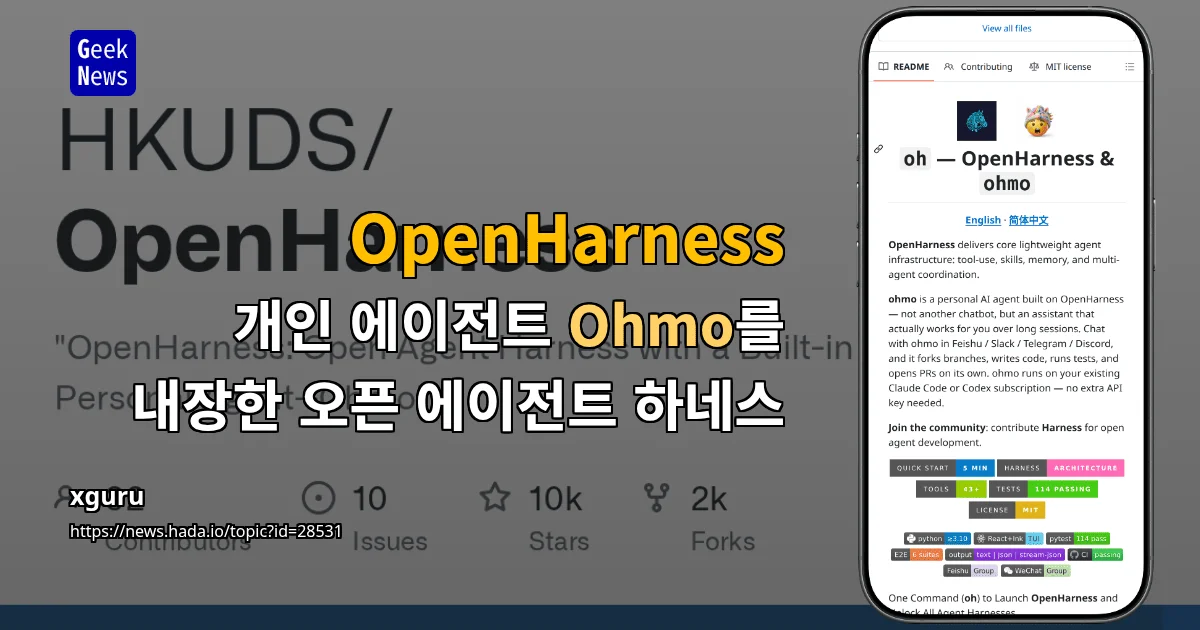 OpenHarness - 개인 에이전트 Ohmo를 내장한 오픈 에이전트 하네스