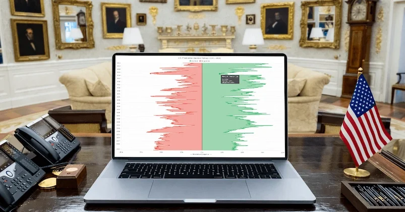 Creating a Vertical Area Chart with JavaScript: 80+ Years of U.S. Presidential Approval Data