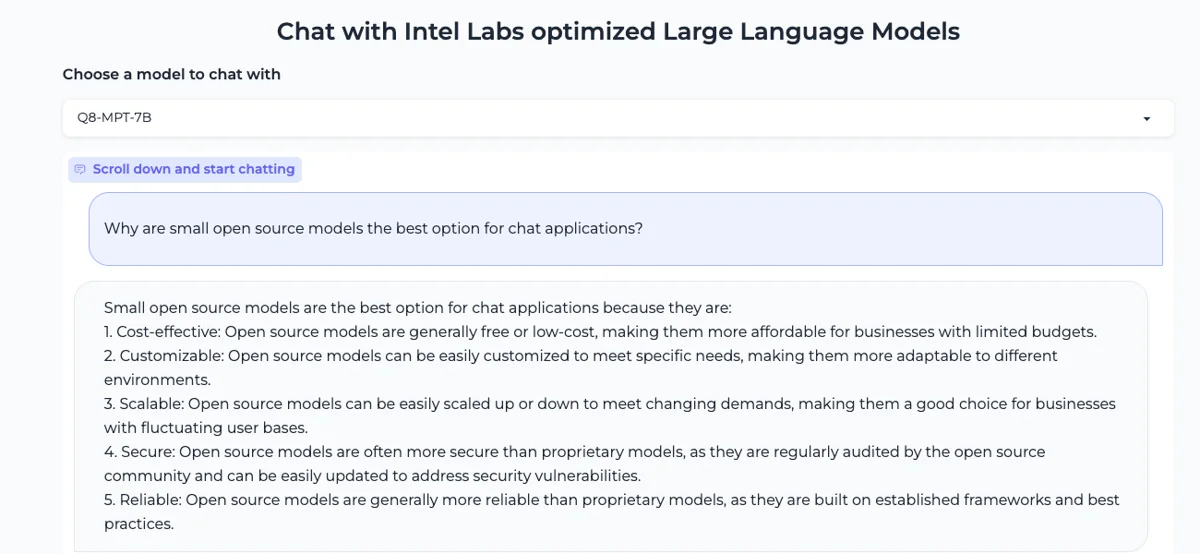 Smaller is better: Q8-Chat, an efficient generative AI experience on Xeon