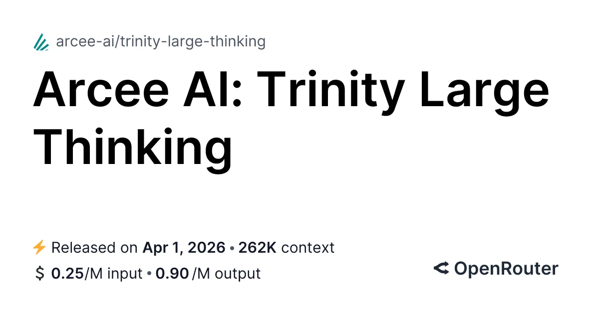 OpenRouter가 Trinity Large Thinking 모델을 정식 지원함. 해당 모델은 reasoning-enabled 기능으로 모델의 내부 추론 과정을 사용자에게 공개함.