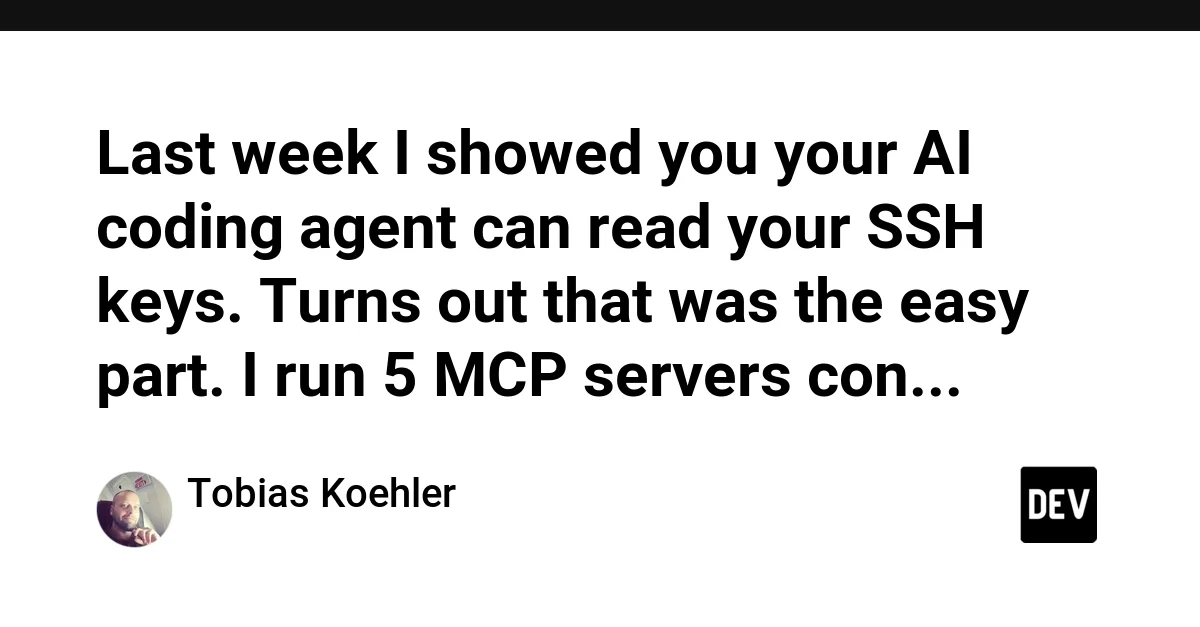 Last week I showed you your AI coding agent can read your SSH keys. Turns out that was the easy part. I run 5 MCP servers con...