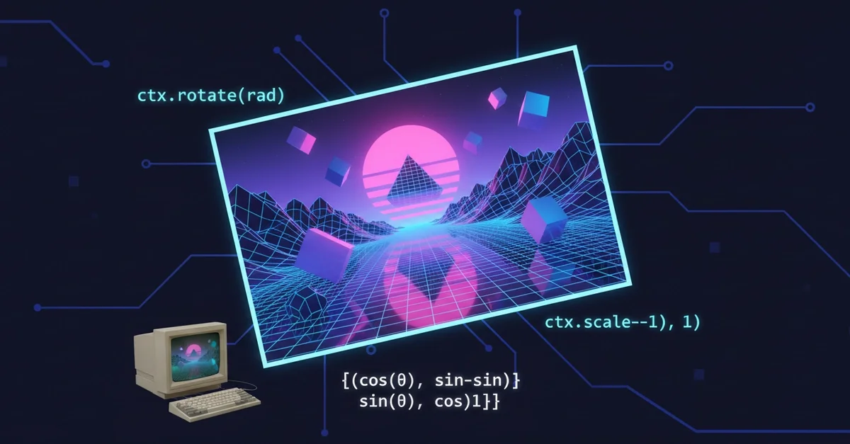 - translate → rotate → scale → drawImage 순서의 렌더링 파이프라인을 구축하여 회전 후 반전을 적용하는 사용자 중심의 변환 로직 설계