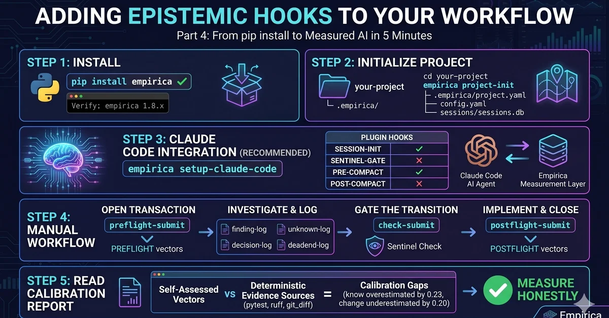 Adding Epistemic Hooks to Your Workflow: From pip install to Measured AI in 5 Minutes