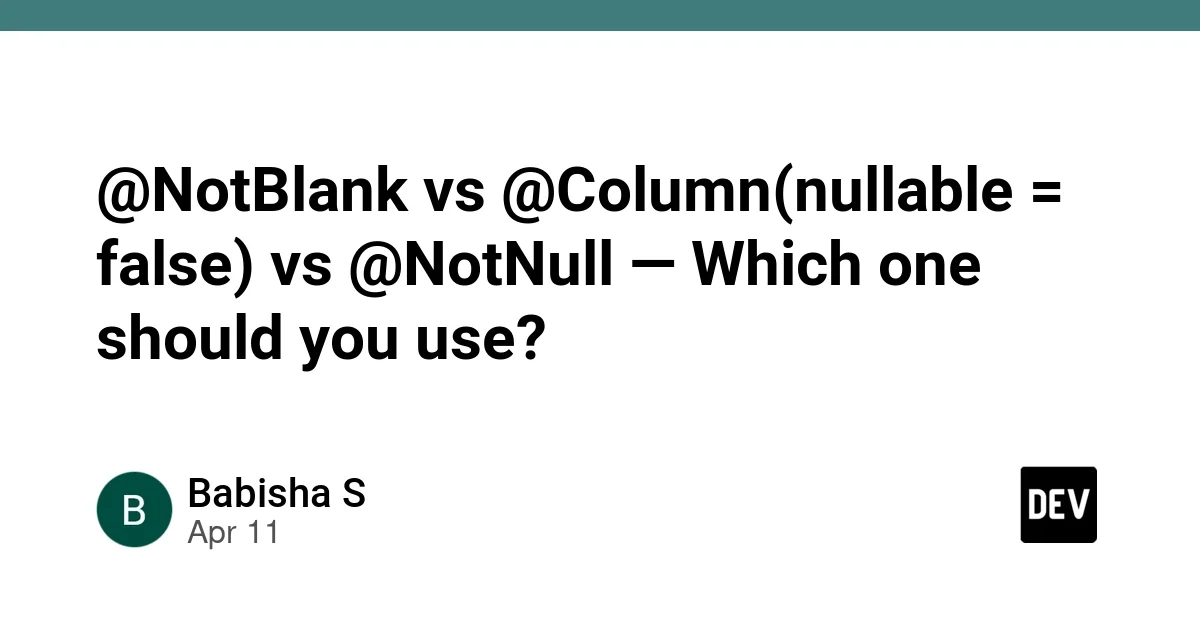 @NotBlank vs @Column(nullable = false) vs @NotNull — Which one should you use?