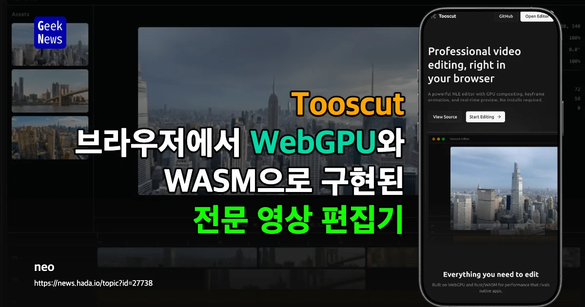 Tooscut이 Rust, WebGPU, WASM, Tanstack Start를 조합해 브라우저 기반 전문 NLE 영상 편집기 구현