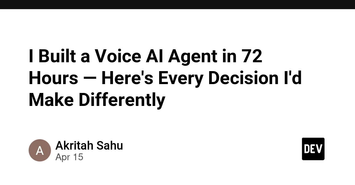 I Built a Voice AI Agent in 72 Hours — Here's Every Decision I'd Make Differently