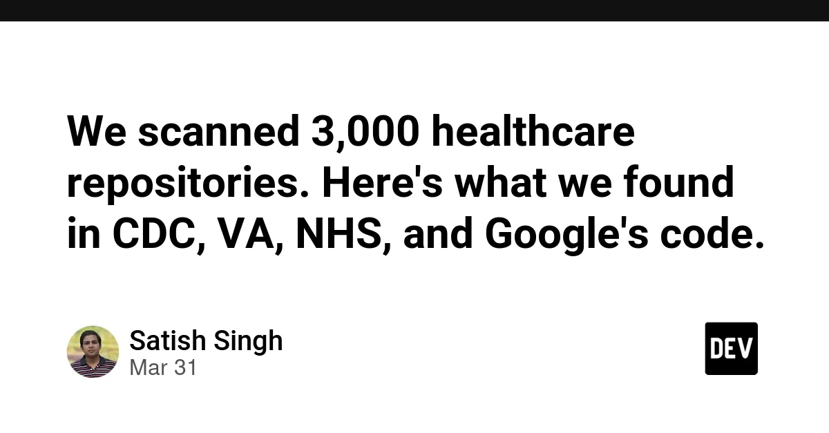 We scanned 3,000 healthcare repositories. Here's what we found in CDC, VA, NHS, and Google's code.