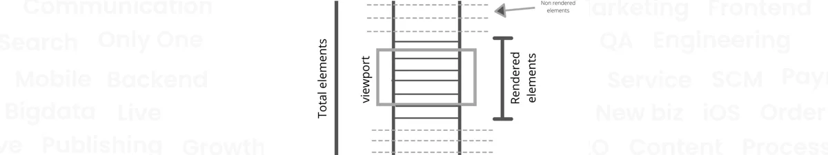 - 뷰포트 기반 렌더링으로 전환: 페이지 초기 로딩 시 사용자 화면에 보이는 영역(Viewport)의 엘리먼트만 생성하고 나머지는 생략
