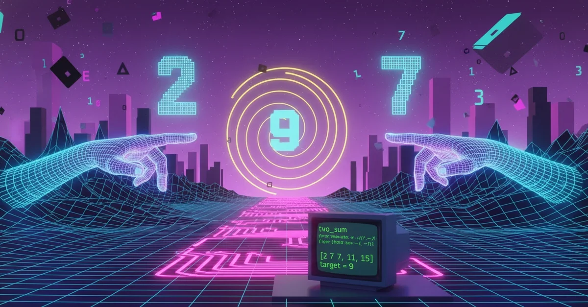 정수 배열과 타겟 값이 주어졌을 때 합계가 타겟과 일치하는 두 원소의 인덱스를 찾는 문제. 중복 요소 사용 불가 및 단일 정답 존재 가정 조건. 효율적인 탐색 알고리즘 설계가 핵심인 과제.