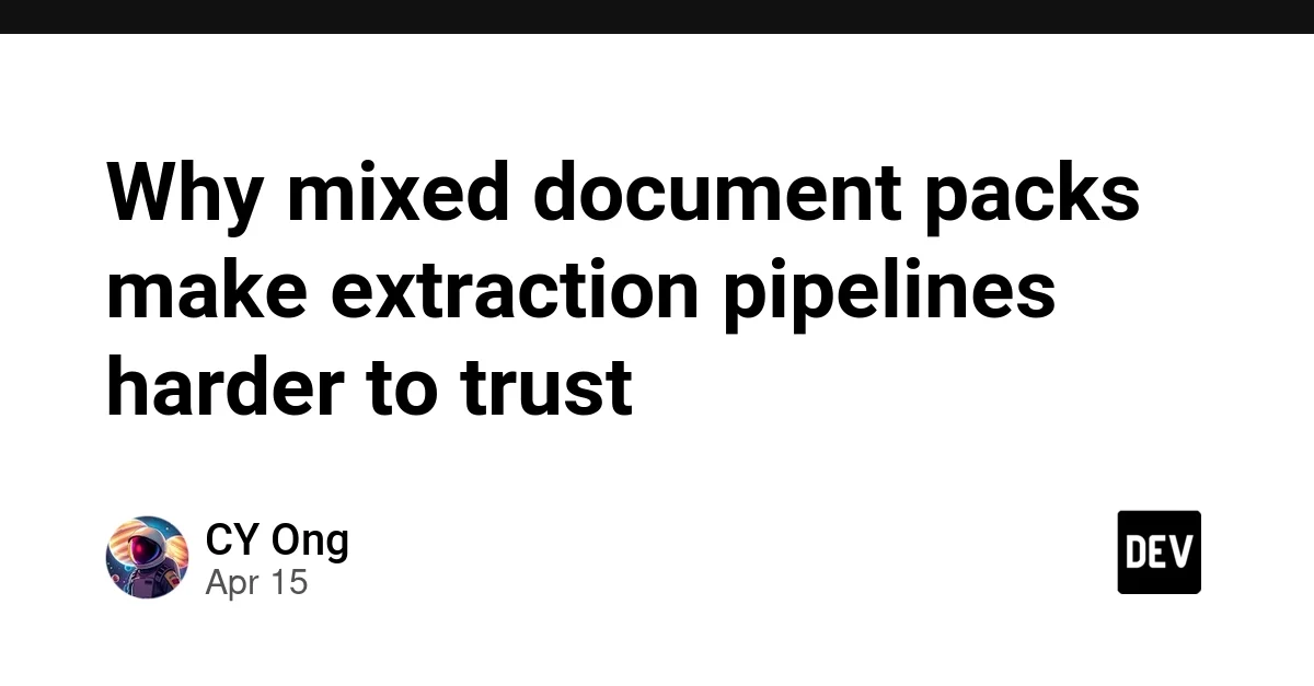단일 문서 가정 기반의 단순 추출 파이프라인이 실제 운영 환경의 Mixed Document Packs를 처리하며 발생하는 한계점 분석. 페이지 역할 구분 부재로 인한 Schema Logic의 취약성과 데이터 해석의 모호함이 주요 병목 지점으로 작용.