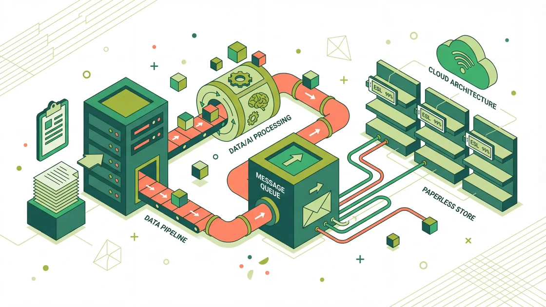 - 준실시간 품절 반영: 재고 변동 이벤트를 감지하여 메시지 파이프라인으로 전국 전자라벨에 즉시 전달, 자동 동기화