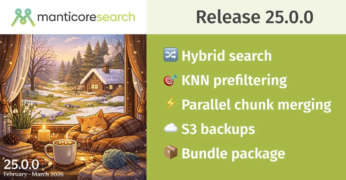 Manticore Search 25.0.0이 번들 패키지 도입과 하이브리드 검색 정식 지원으로 검색 파이프라인 단순화