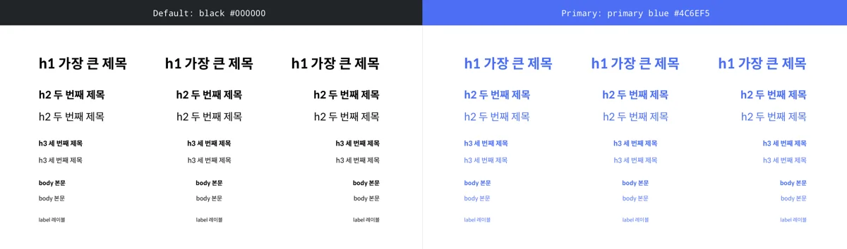 - 타이포그래피 시스템 구축: 폰트 사이즈, 두께, 컬러별 스타일을 정의하고 Runner를 활용해 빠른 적용