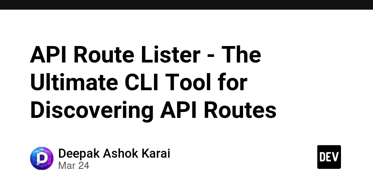 Deepak Ashok Karai가 API Route Lister CLI 도구를 개발해 Express, Fastify, Next.js, Hapi, Koa 등 5개 프레임워크의 모든 API 엔드포인트를 자동 탐지 및 시각화