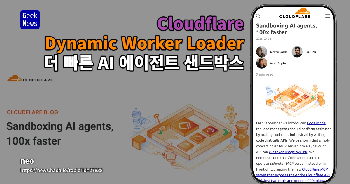 Cloudflare가 V8 isolate 기반 Dynamic Worker Loader로 AI 에이전트 코드 샌드박스를 Linux 컨테이너 대비 100배 빠르게 구현