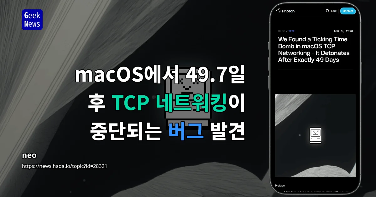 macOS에서 49.7일 후 TCP 네트워킹이 중단되는 버그 발견