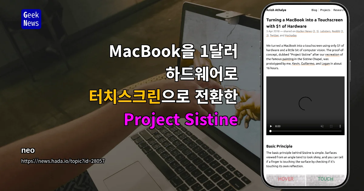 Project Sistine가 1달러 하드웨어로 MacBook을 터치스크린으로 변환하는 컴퓨터 비전 기술을 공개했다