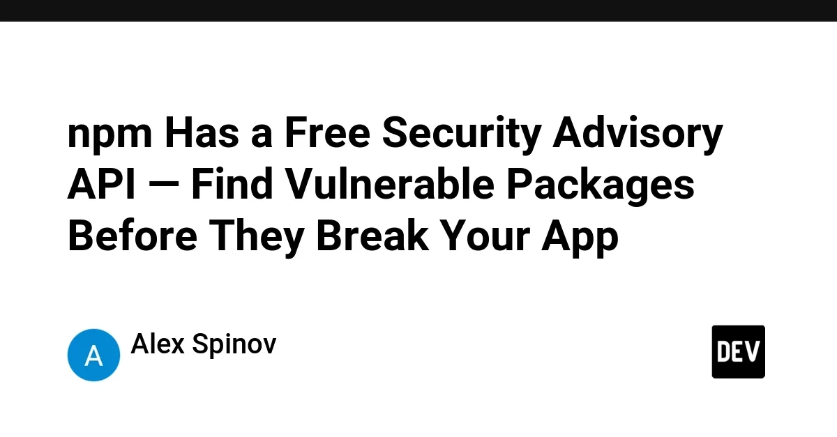 npm Has a Free Security Advisory API — Find Vulnerable Packages Before They Break Your App