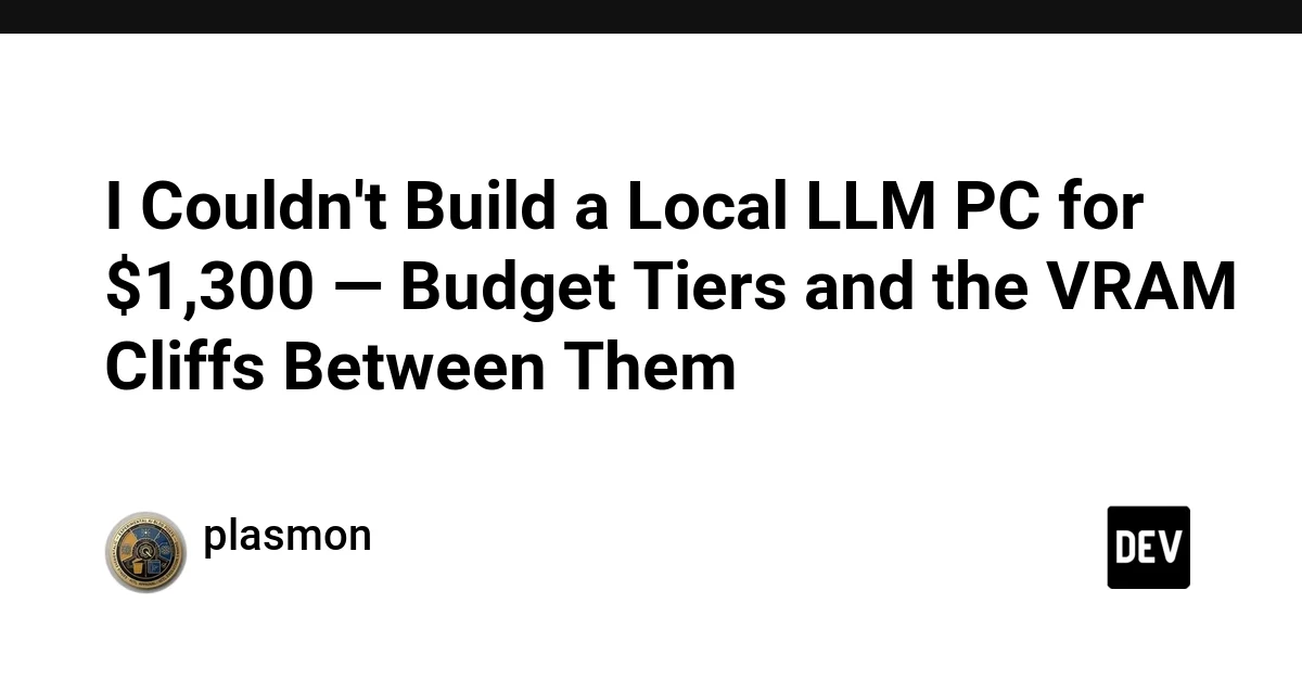 I Couldn't Build a Local LLM PC for $1,300 — Budget Tiers and the VRAM Cliffs Between Them