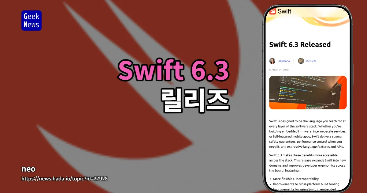 Swift 6.3 릴리스가 @c 속성으로 Swift 함수를 C 코드에 노출하고 noncopyable 타입을 개선해 임베디드와 크로스플랫폼 개발 지원 확대
