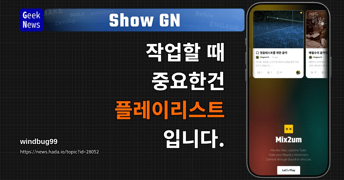 Show GN: 작업할 때 중요한건 플레이리스트 입니다.