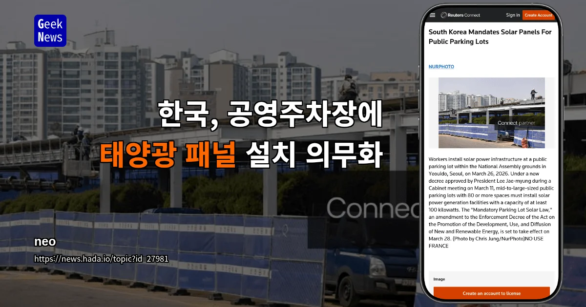 한국政府在 80면 이상 공영주차장에 100kW 태양광 설비 설치를 의무화하여 도시 재생에너지 확대와 탄소 감축을 추진합니다.