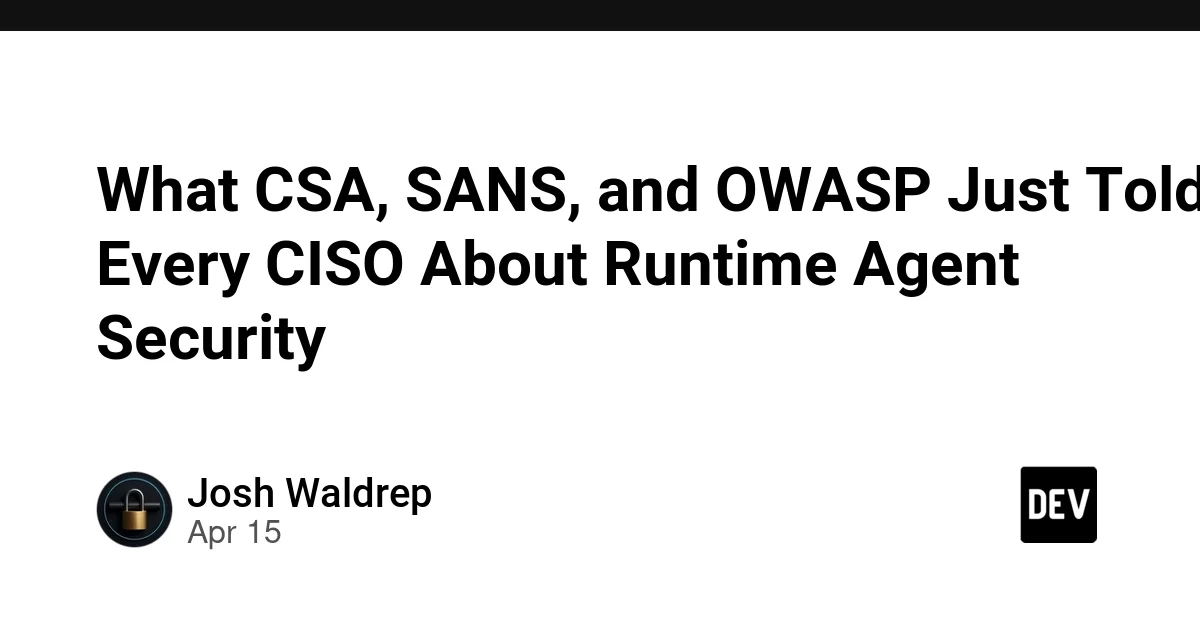 What CSA, SANS, and OWASP Just Told Every CISO About Runtime Agent Security