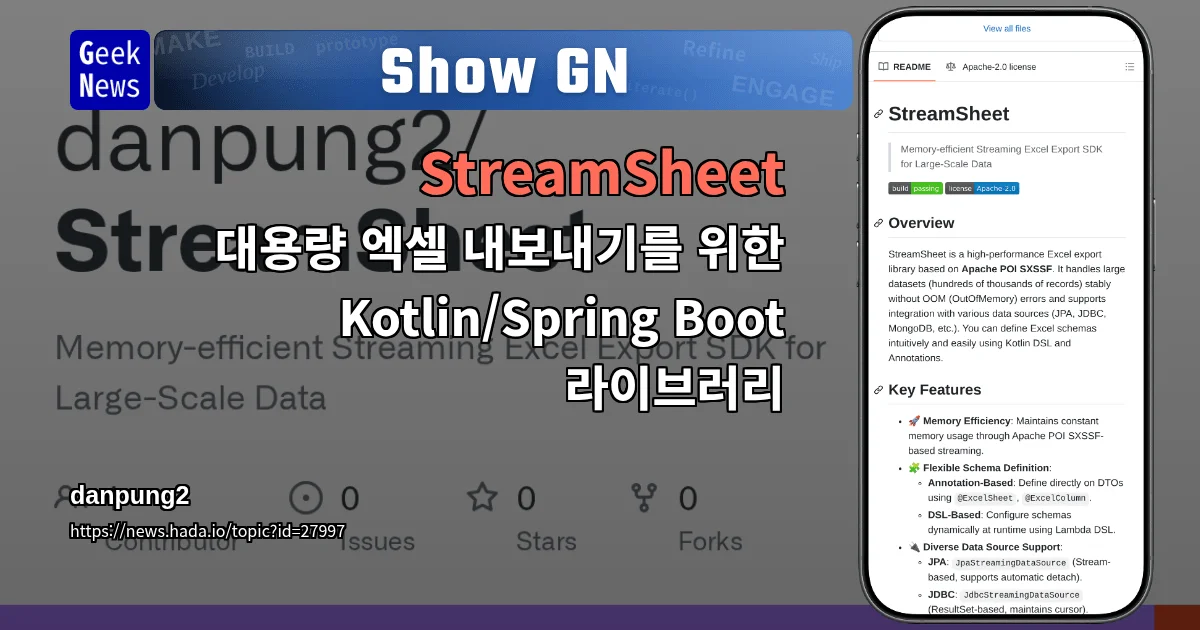 Show GN: StreamSheet - 대용량 엑셀 내보내기를 위한 Kotlin/Spring Boot 라이브러리
