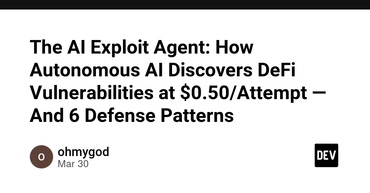 The AI Exploit Agent: How Autonomous AI Discovers DeFi Vulnerabilities at $0.50/Attempt — And 6 Defense Patterns