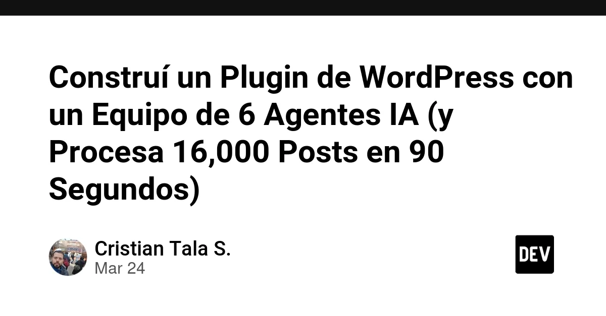 Construí un Plugin de WordPress con un Equipo de 6 Agentes IA (y Procesa 16,000 Posts en 90 Segundos)