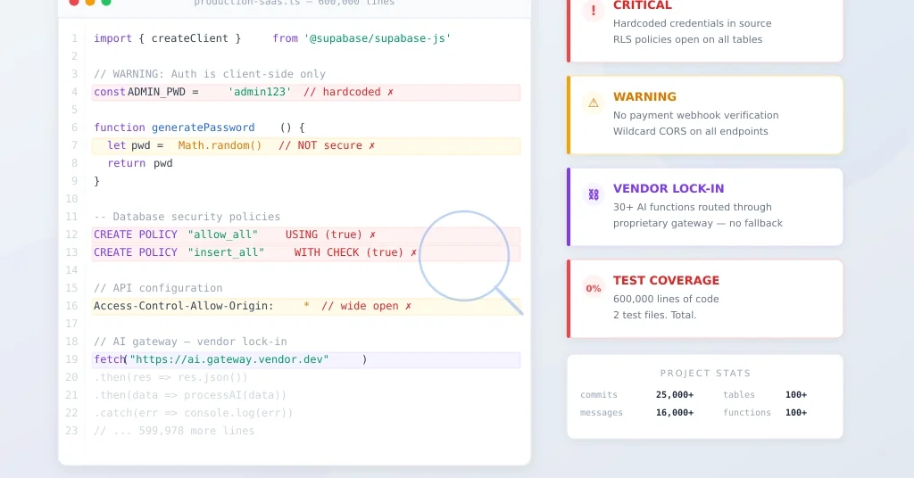 600,000 Lines of AI-Generated Code: What We Found Inside a Production SaaS