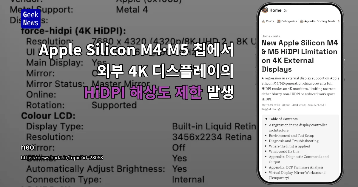 Apple Silicon M4·M5 칩에서 외부 4K 디스플레이의 HiDPI 해상도 제한 발생