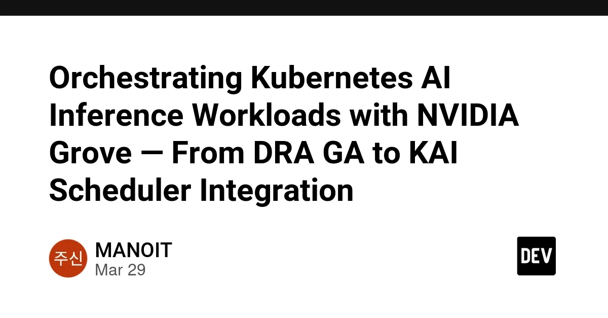 Kubernetes에서 AI 추론 워크로드가 첫 번째 클래스 시민으로 자리잡으면서, 단순 Pod 관리를 넘어 멀티컴포넌트 시스템의 선언적 정의와 조율이 필수 역량이 되었다. Grove, DRA, KAI Scheduler로 구성된 새로운 오케스트레이션 스택이 AI 인프라의 복잡성을 관리하는 표준 패턴으로 진화하고 있다.