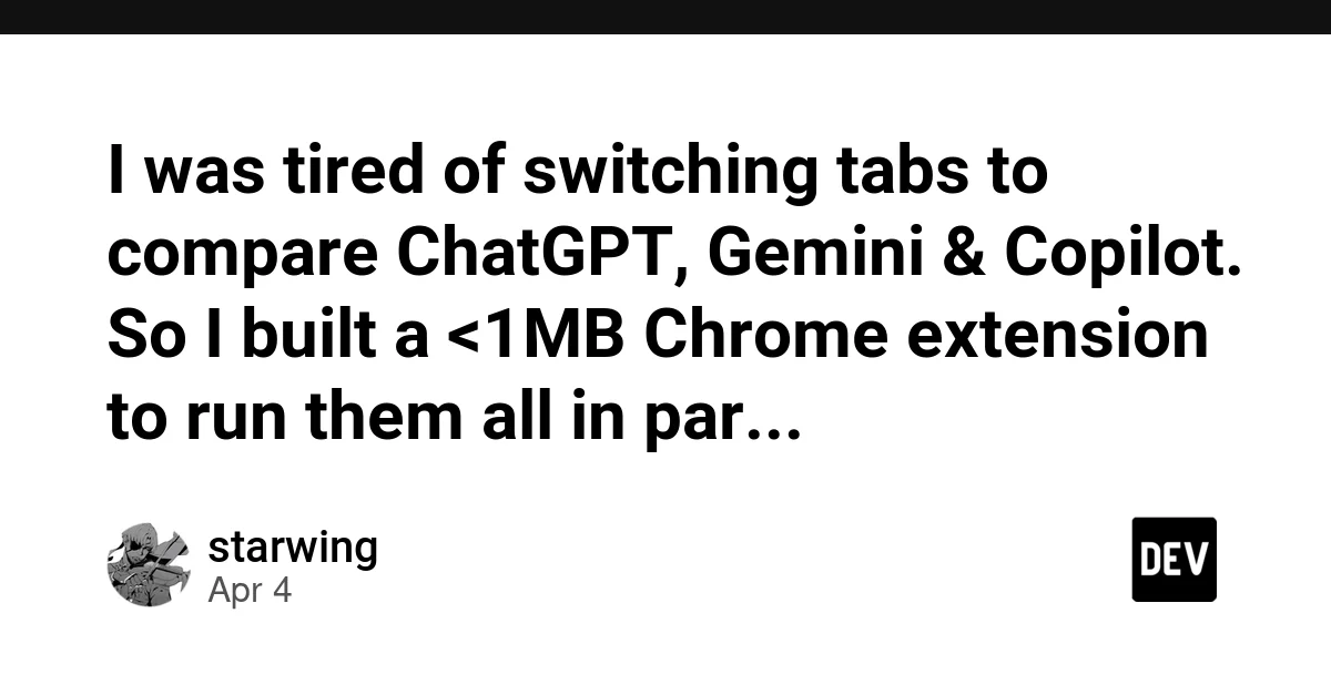 I was tired of switching tabs to compare ChatGPT, Gemini & Copilot. So I built a <1MB Chrome extension to run them all in parallel.