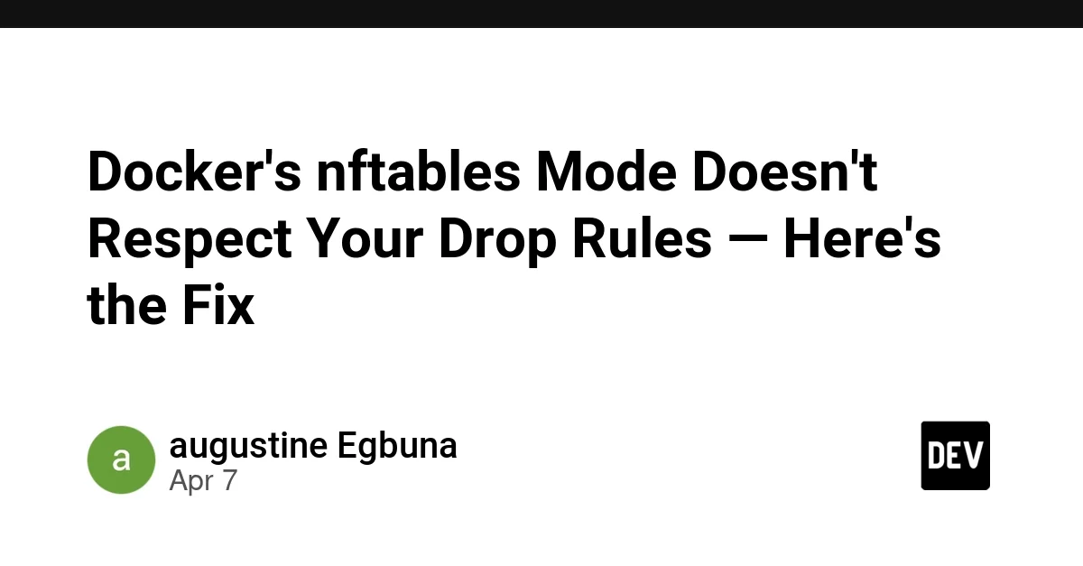 Docker's nftables Mode Doesn't Respect Your Drop Rules — Here's the Fix
