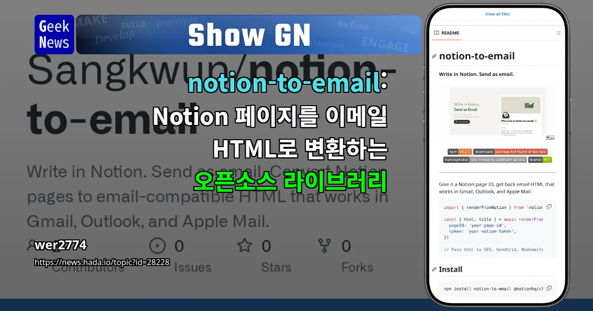 Show GN: notion-to-email: Notion 페이지를 이메일 HTML로 변환하는 오픈소스 라이브러리