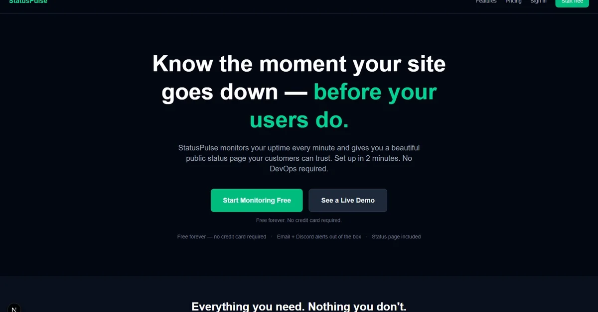 솔로 파운더가 Freshping 종료 후 1분 간격 모니터링과 공개 상태 페이지를 결합한 StatusPulse를 개발하며 발견한 시장 공백