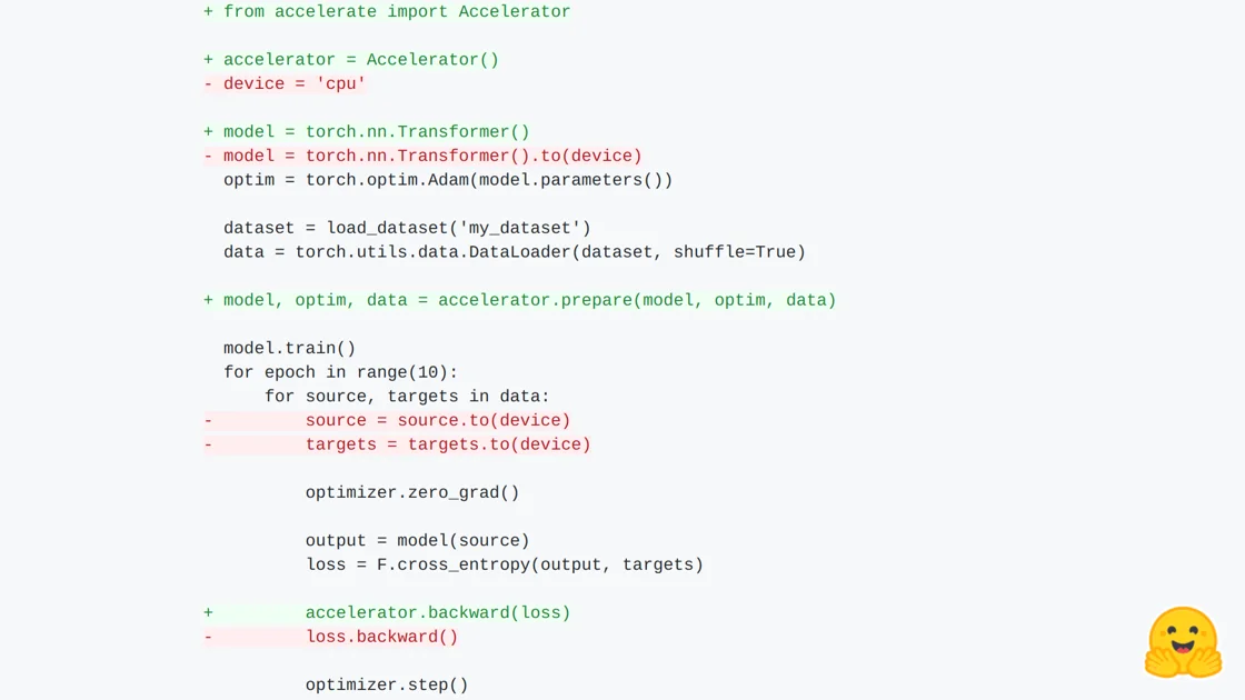 Hugging Face๊ฐ Accelerate ๋ผ์ด๋ธ๋ฌ๋ฆฌ๋ก PyTorch ํ๋ จ ์คํฌ๋ฆฝํธ์ 5์ค์ ์ฝ๋๋ง ์ถ๊ฐํด ๋ถ์ฐ ํ์ต ๋ฐ ํผํฉ ์ ๋ฐ๋ ์ง์