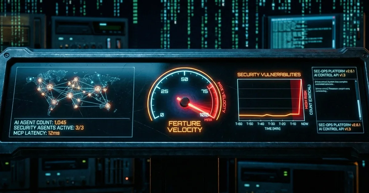 AI 에이전트의 코드 생성 속도 증가는 기존 보안 도구와 인간 검수 사이의 보완 관계를 무효화하므로, 생성 시점에 로직 수준의 결함을 탐지하고 파이프라인 자체를 프로덕션 수준으로 격리하는 사전 예방 아키텍처로 전환해야 한다.