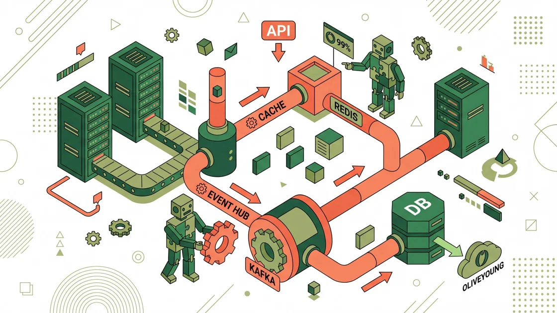 올리브영이 MSA 환경에서 프로모션·픽업 데이터 연동 시 데이터 특성별로 Redis 캐시 및 Kafka 이벤트 하이브리드 전략을 선택해 API 호출 부하 최소화와 실시간성 확보