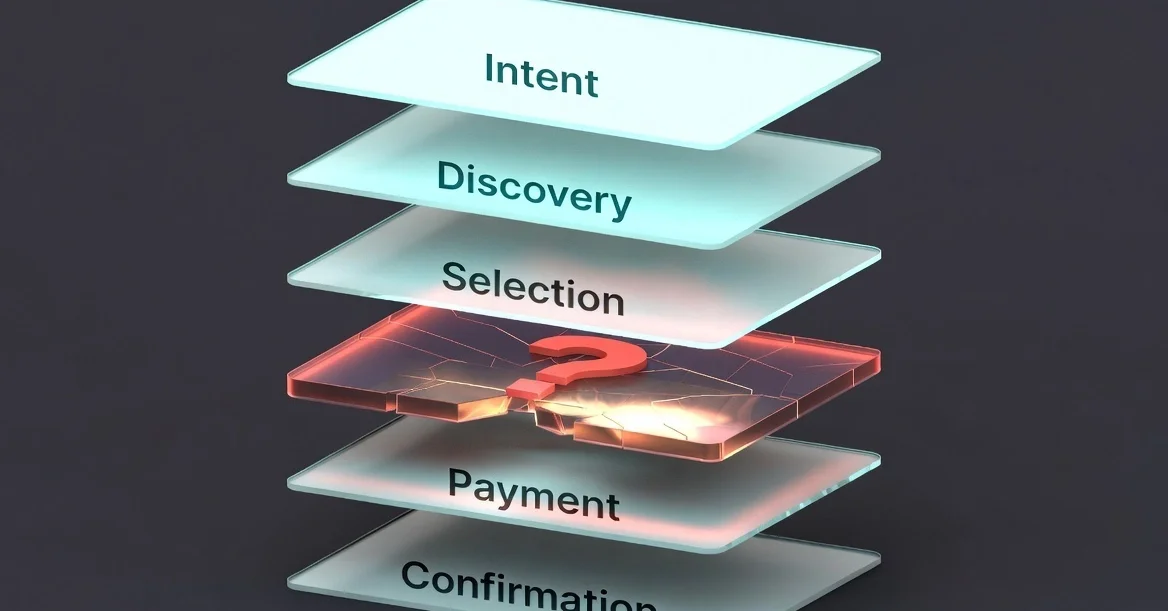 결제 인프라와 LLM 프레임워크가 존재함에도 불구하고 Intent와 Payment 사이의 정책 집행 계층 부재로 인한 제어 불능 상태. Prompt 기반 제어의 Hallucination 및 Prompt Injection 취약성과 Payment Processor의 Context 인지 불능으로 인한 거버넌스 공백 발생.