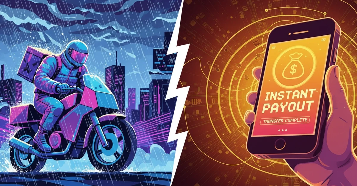 배달 파트너가 폭우로 저녁 배달 미션을 잃을 때 Zenvest가 트리거를 자동 감지하고 수초 내 보험금을 계정에 입금해 지급 딜레이 제거.