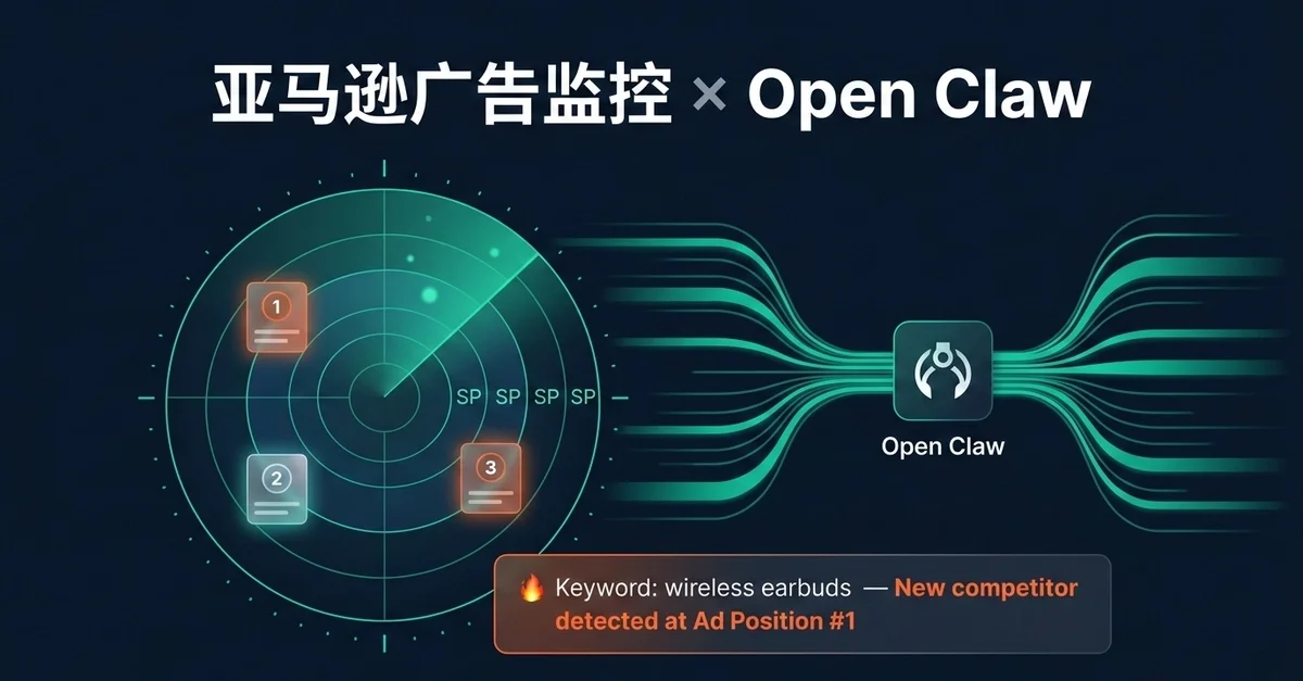 Amazon 광고 플랫폼에서 Open Claw + Pangolinfo SERP API를 활용해 경쟁사 광고 순위 변화를 2시간 이내에 자동 감지하고 실시간 모니터링 시스템 구축