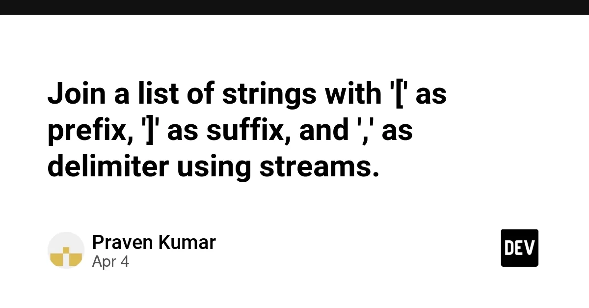 피드로 돌아가기![Join a list of strings with '[' as prefix, ']' as suffix, and ',' as delimiter using streams.](https://tsewlmecqtvqphyhezcm.supabase.co/storage/v1/object/public/thumbnails/b16856c5-0e92-4c30-a919-c7815008fd74.webp?)