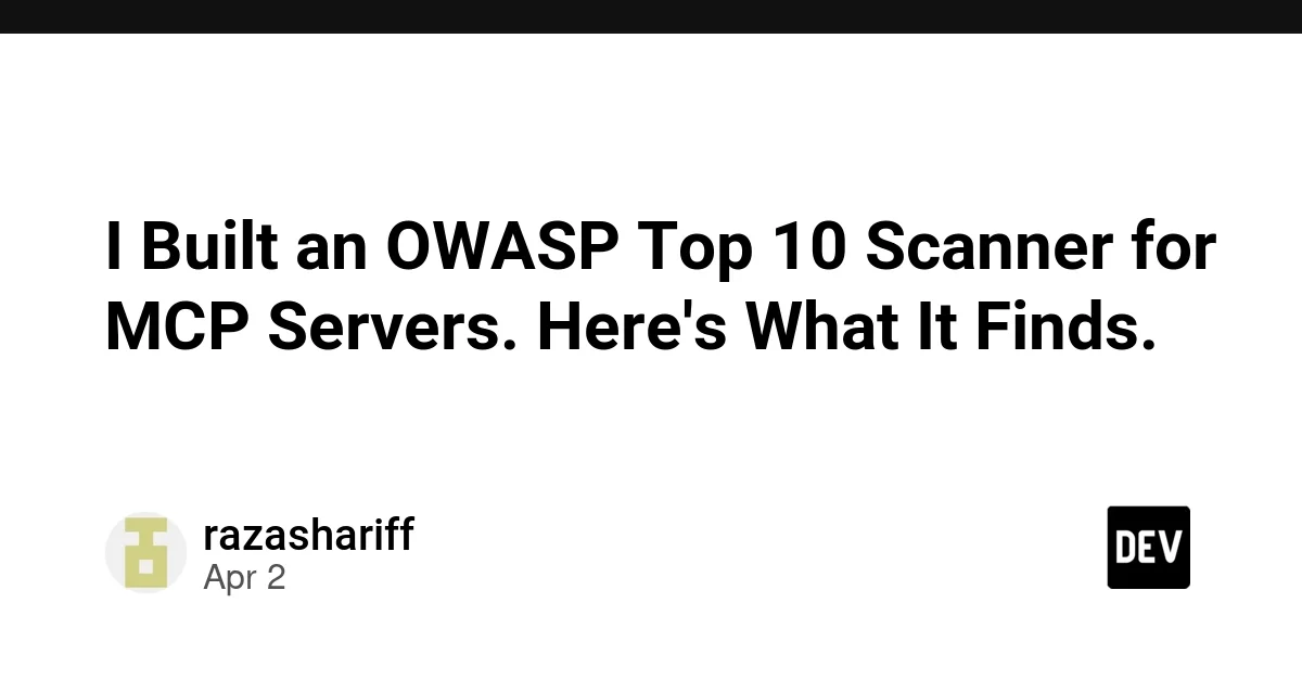 I Built an OWASP Top 10 Scanner for MCP Servers. Here's What It Finds.