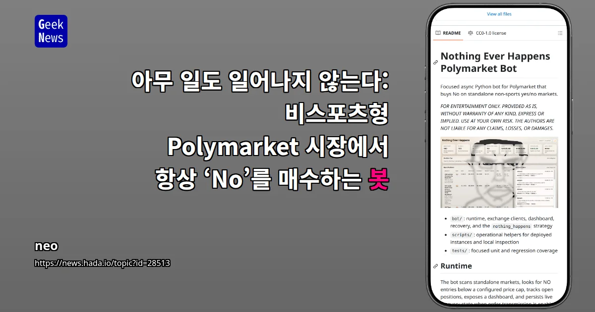 아무 일도 일어나지 않는다: 비스포츠형 Polymarket 시장에서 항상 ‘No’를 매수하는 봇