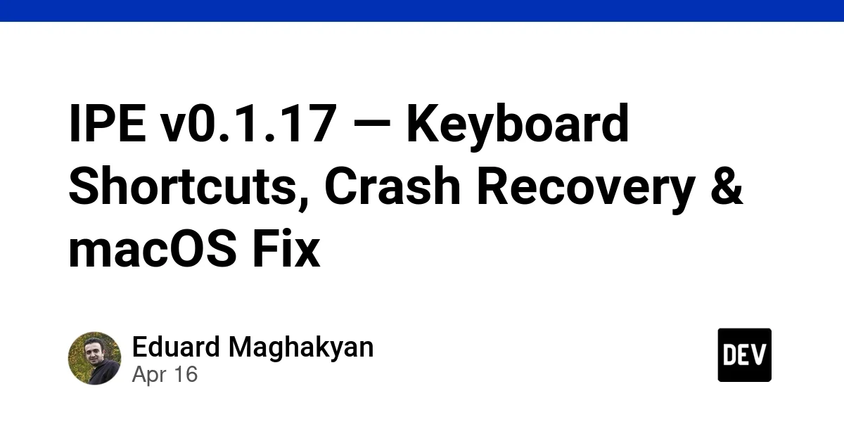 IPE v0.1.17 - Keyboard Shortcuts, Crash Recovery & macOS Fix