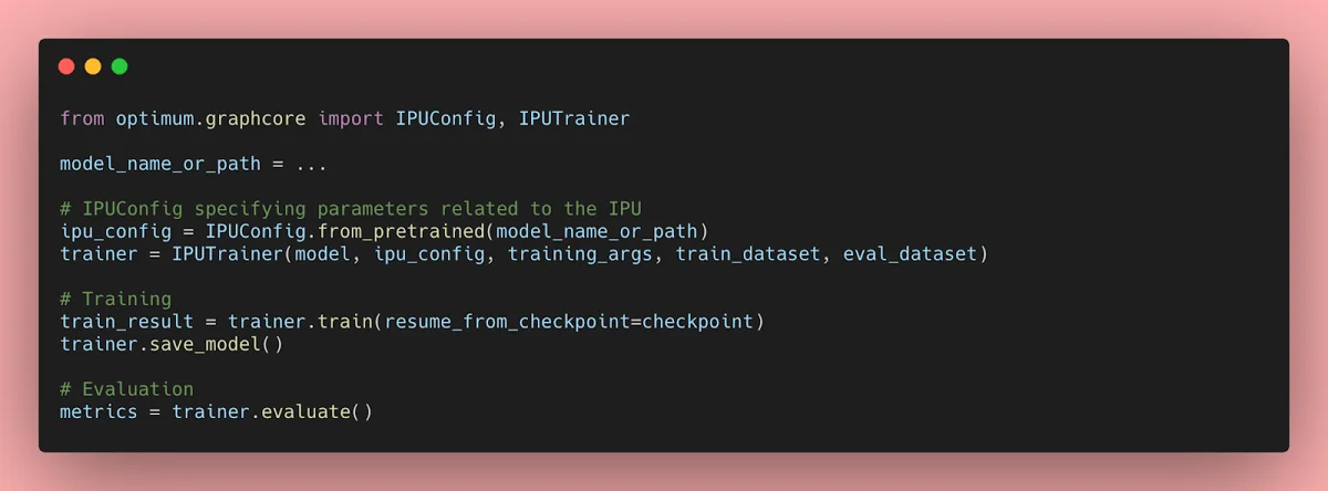 - IPUTrainer 클래스 활용: Optimum에서 제공하는 IPUTrainer를 사용해 상태 최신 모델을 IPU에서 학습 및 검증