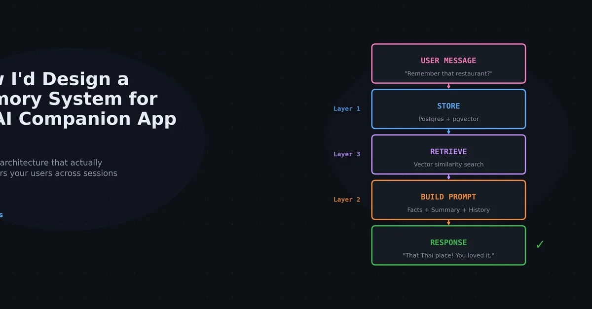 - 단순 RAG 도입 전, 전역적 정체성을 위한 Summary 레이어와 국소적 기억을 위한 Retrieval 레이어의 분리 여부 검토 - 데이터 쓰기 시점에 주제, 감정, 개인적 사실 등의 메타데이터를 태깅하여 검색 비용 최적화 - LLM의 망각 현상을 방지하기 위해 시간 경과와 무관하게 유지되는 '중요 정보 하한선(Memory Floor)' 설정 - 1,000개 이상의 메시지와 다수 세션을 활용한 사실 복원 벤치마크 테스트 수행