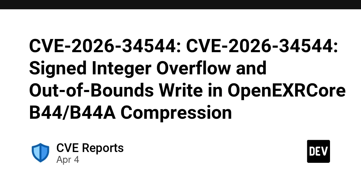 CVE-2026-34544: CVE-2026-34544: Signed Integer Overflow and Out-of-Bounds Write in OpenEXRCore B44/B44A Compression